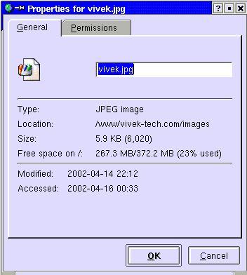 File Properties showing information like file type, location, size, and when file modified or accessed etc
